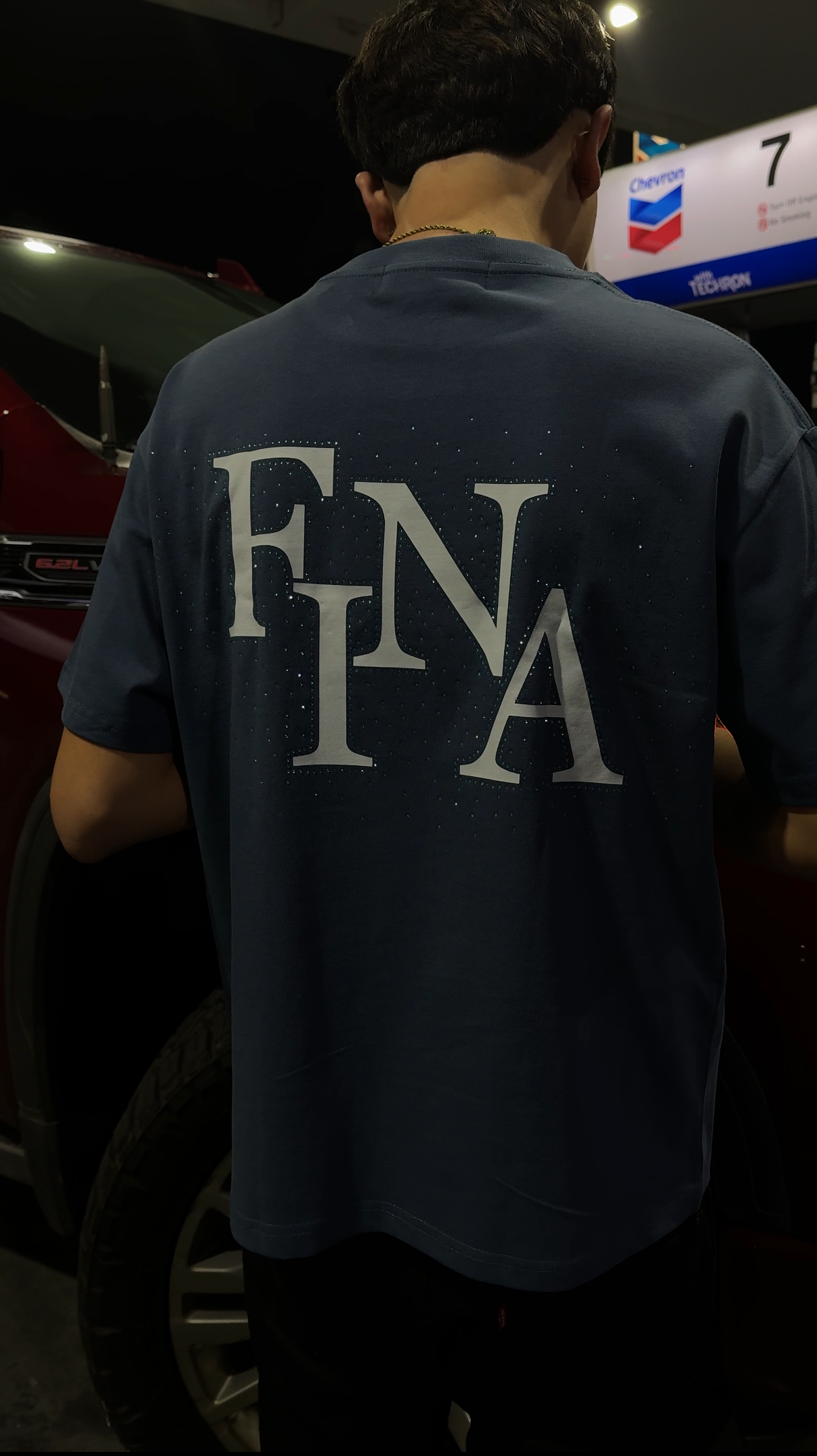 Crafted from premium heavyweight cotton for a perfect balance of comfort and structure. Featuring a bold “MF” rhinestone-inspired print on the front chest and “FINA” graphic across the back with rhinestones, this piece captures the essence of elegance luxury.